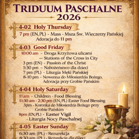 Our parish is bilingual — each day, generations of English and Polish-speaking faithful come together, united by their shared faith and love for the Eucharist.
